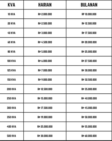 Notes Sewa Genset bulanan: